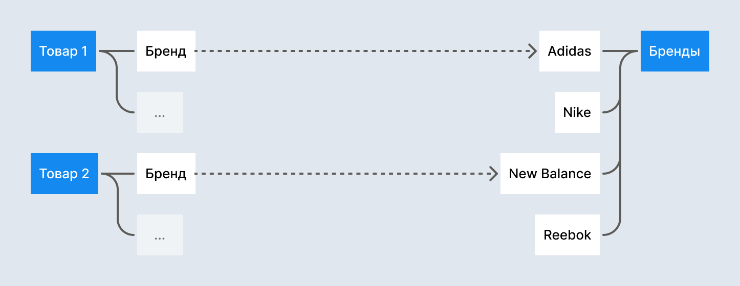 Ссылочные поля — это «мостики» между сущностями: товар связан с категорией, тегами, продавцом, заказами. Благодаря им карточка не живёт в вакууме, а встраивается в общую систему.